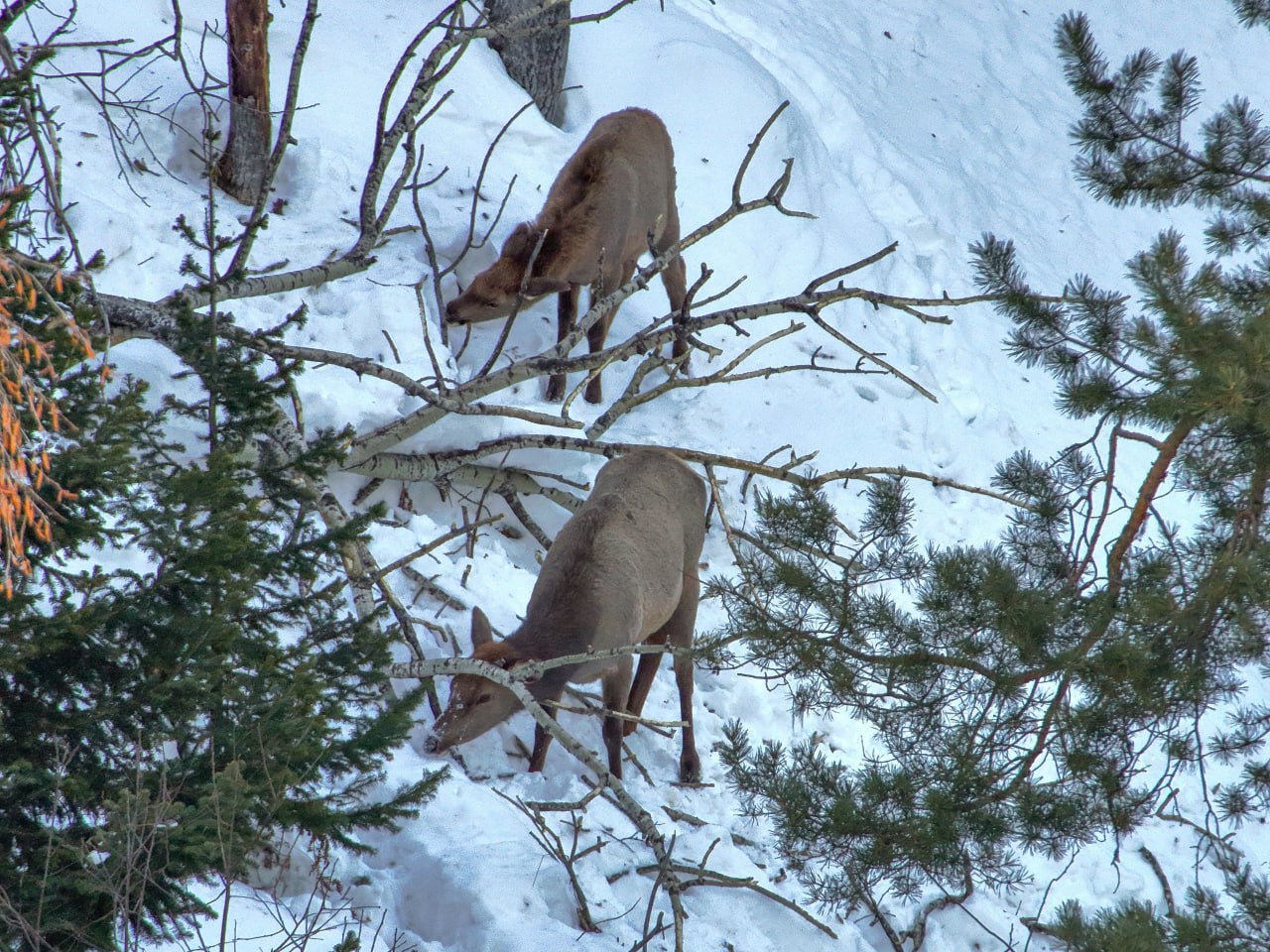 "Чтобы сохранить силы, маралам приходится тратить больше энергии. В поисках мест с меньшим снегом животные спускаются с вершин туда, где толщина снежного покрова меньше и передвигаться и добыть корм легче", – объяснили сотрудники заповедника в своих соцсетях.