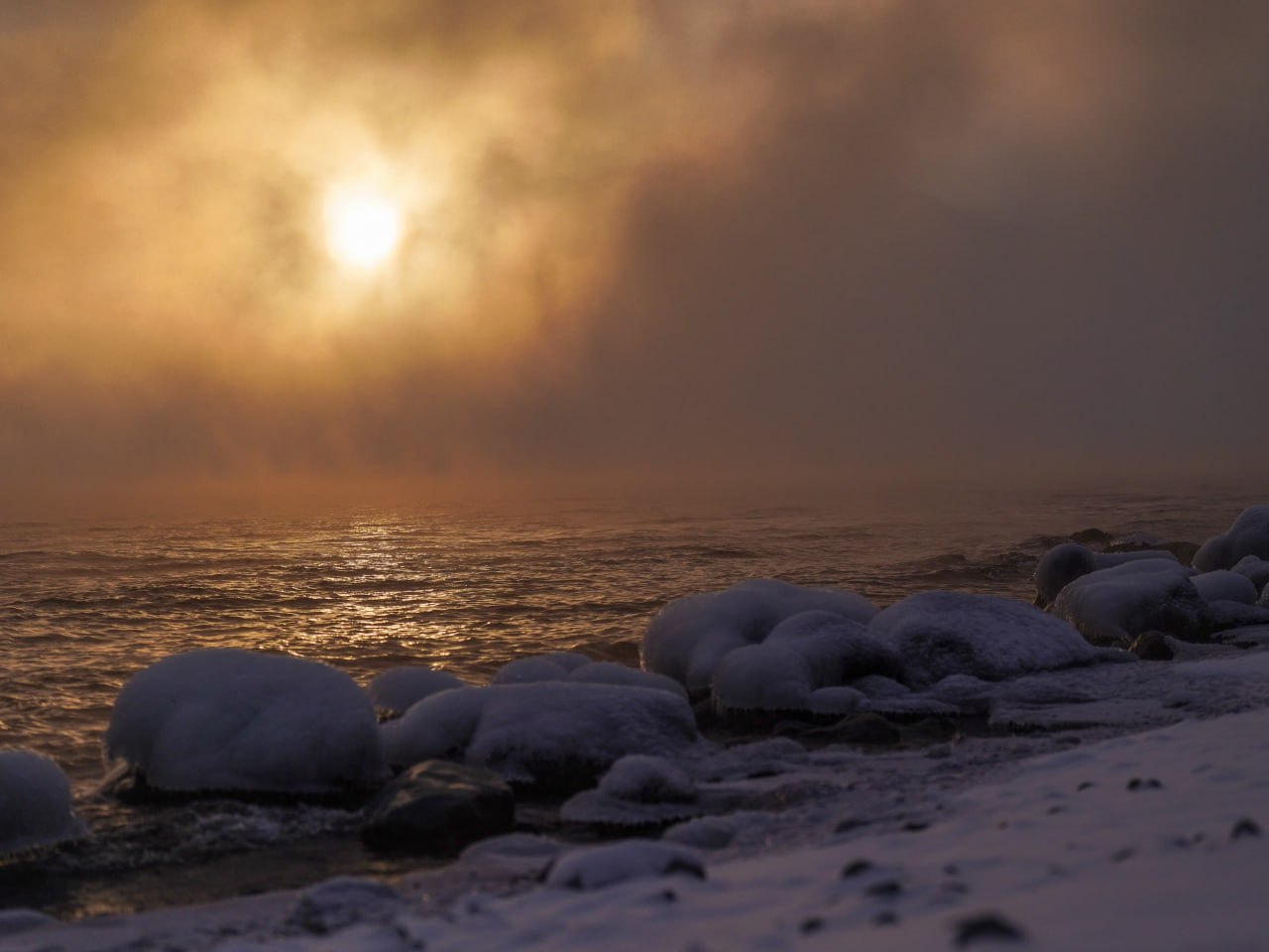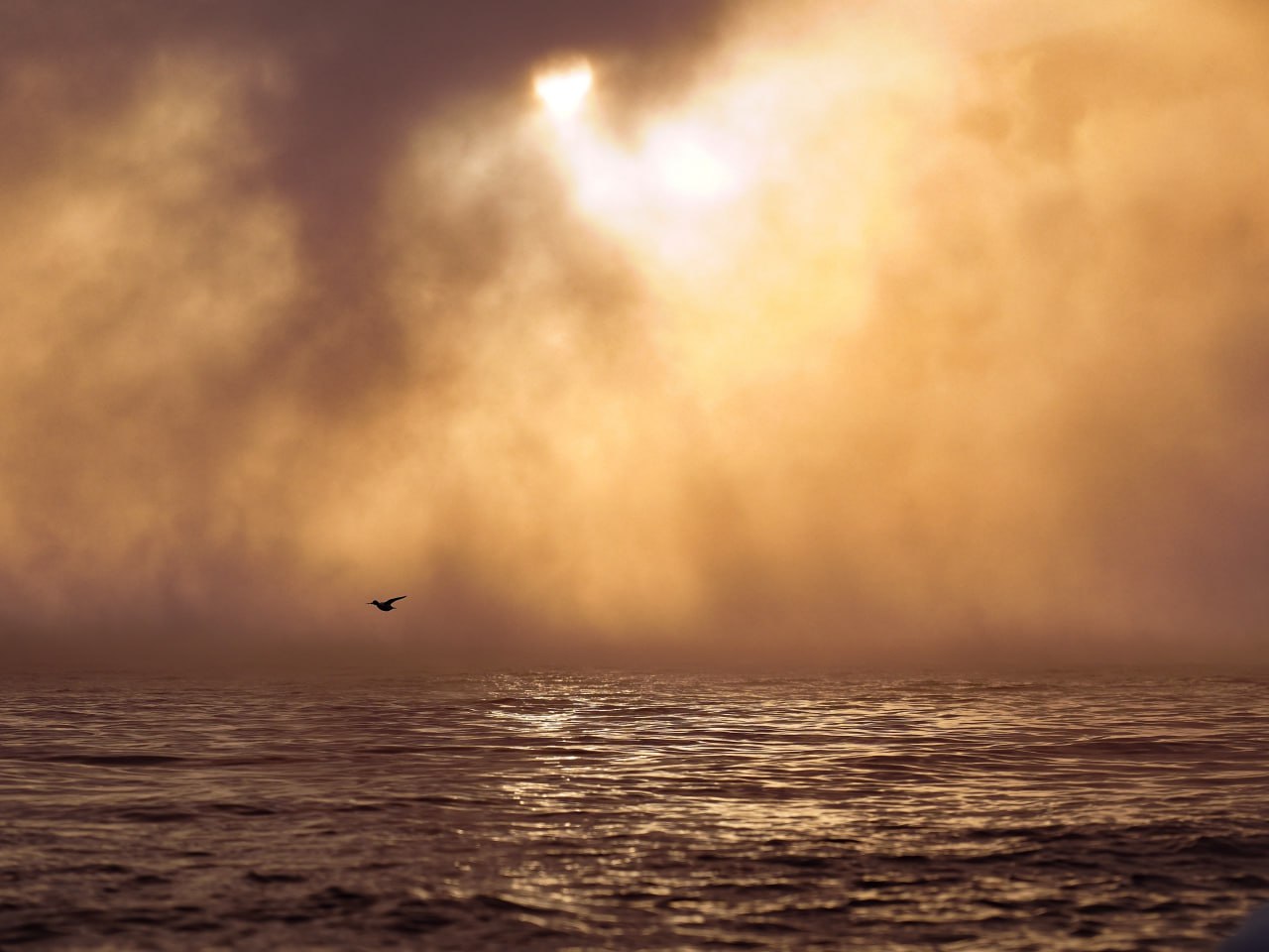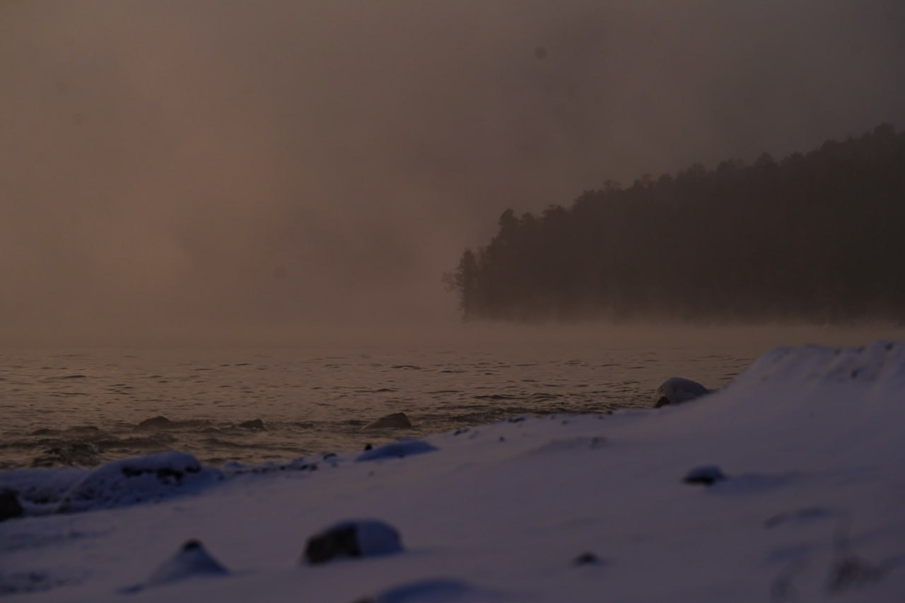 Сотрудники Алтайского заповедника запечатлели озеро, окутанное плотным туманом. Вместо привычных солнечных бликов — густая завеса испарений, скрывающая небо даже в ясную погоду. Такие туманы особенно плотные и эффектные в безветренные и маловетренные дни.