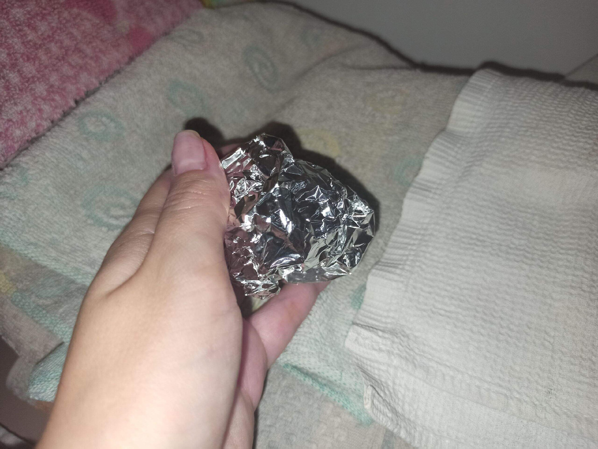 Фольга естественно поглощает влагу, снижая влажность внутри ящика. Влажность — главный враг чистоты и свежести, поэтому такой шарик помогает полотенцам дольше оставаться сухими и мягкими на ощупь.