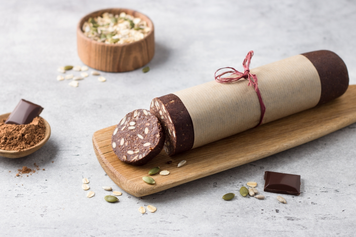 Иногда эффектный вкус рождается из простых вещей: шоколадная колбаса, где хруст овсянки встречается с масляной глубиной какао и легкой сладостью кураги. Ритуал приготовления — ваш тихий секрет уютного стола: минуты на плиту, часы в холодильнике, а затем тонкие ломтики, которые снимают усталость любого дня.