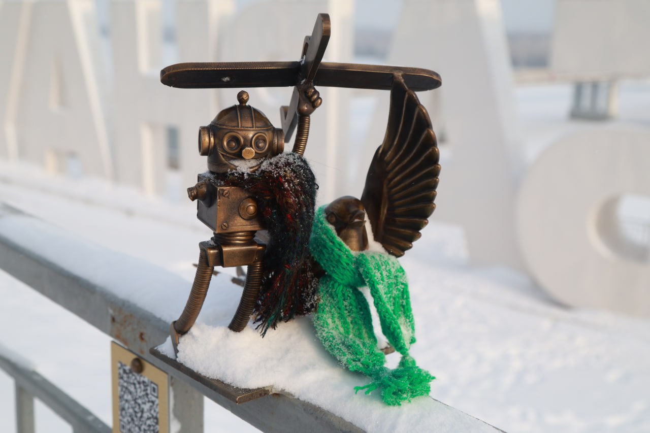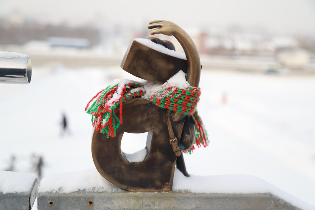 Бронзовые арт-объекты в центре Барнаула укутали в вязаные шарфики. Теплые аксессуары появились у семи букв, которые собираются в слово "Барнаул". Все они расположены на лестнице в Нагорный парк. А также у фигурок-персонажей "Самоделкин и ласточка" и "Голубь-аристократ" на набережной Оби.