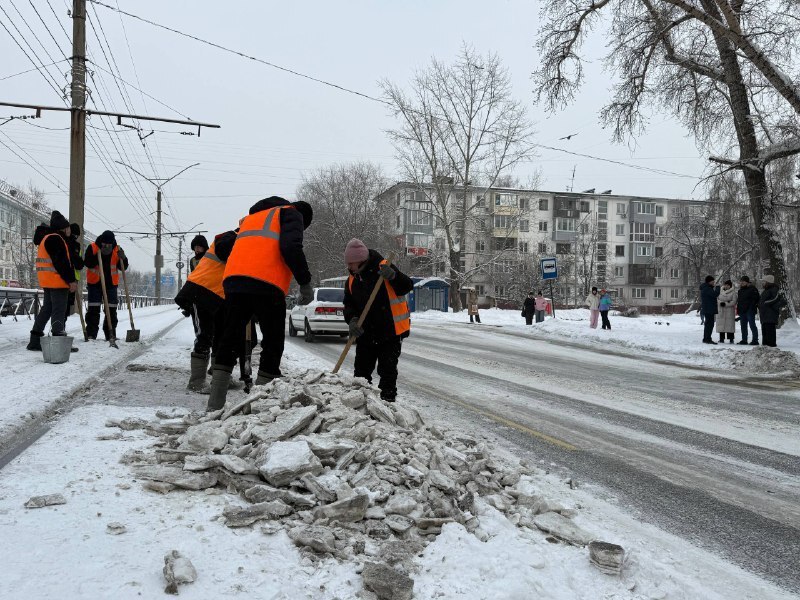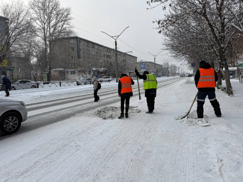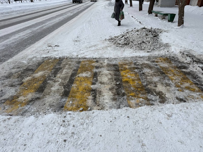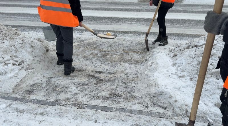 Ручным способом очищены пешеходные переходы на ул. Вали Максимовой, ул. Ленина, ул. Васильева, ул. Митрофанова, ул. Ударная, ул. 8 Марта, ул. Советская и в пер. Мартьянова.