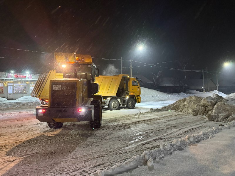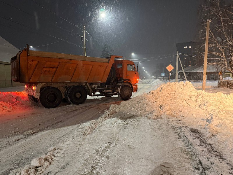Погрузка и вывоз снега выполнены на ул. Декабристов, ул. Митрофанова и в пер. Мартьянова. В дальнейшем техника будет работать на пер. Омский и других ул. города согласно плану.