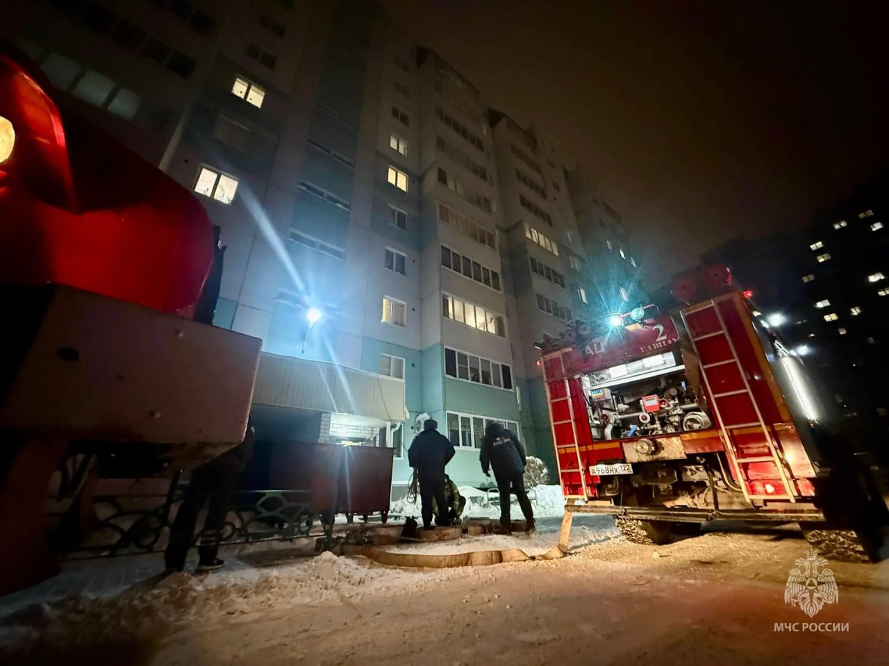 Огонь охватил мебель и вещи, дым быстро распространился по подъезду. Спасатели вывели пятерых человек, включая ребёнка, ещё два жильца эвакуировались самостоятельно. Площадь пожара составила около 5 кв. м. К тушению привлекли 10 человек, две автоцистерны и две автолестницы.