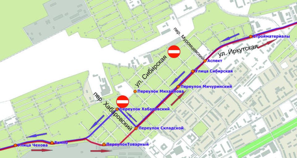 Ограничение движения на отрезке улицы от переулка Муромцевского до переулка Хабаровского введут со 2 февраля по 2 марта. В это время на улице Иркутской введут двусторонее движение для объезда участка.