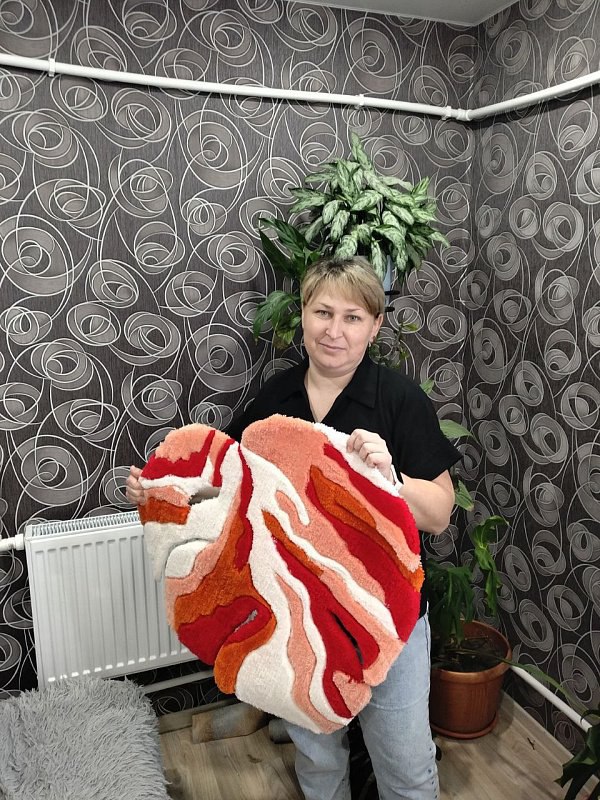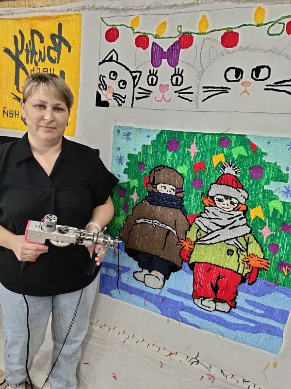 Ольга Иванова открыла производство ковров с поддержкой государства. Свои работы она выполняет в технике тафтинг: рисунок на ткань наносит не ниткой, а пучками.