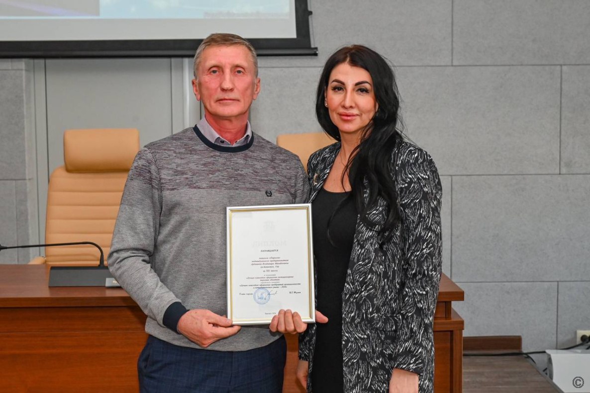 В администрации города Барнаула состоялось торжественное награждение победителей ежегодного конкурса «Лучшее новогоднее оформление предприятий промышленности и потребительского рынка – 2026». В конкурсе приняли участие 107 предприятий промышленности и потребительского рынка города Барнаула, из них победителями признаны 68 предприятий. Дипломы участникам встречи вручила председатель комитета по развитию предпринимательства, потребительскому рынку и вопросам труда администрации города Наталья Кротова: