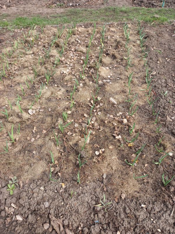 - Кислородное голодание. Если растущий чеснок начинает желтеть выборочно, это может указывать на недостаток воздуха в почве. Сухая верхняя корка образуется после дождей, что нарушает доступ кислорода к корням. Решение: рыхление почвы и повторная мульчировка для удержания влаги.