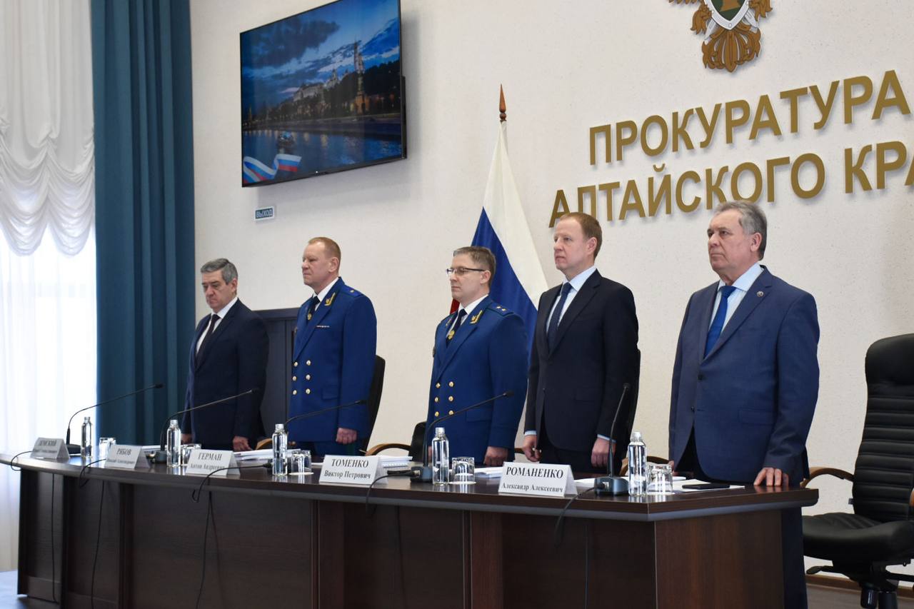 Сегодня, 04.02.2025, состоялось заседание коллегии прокуратуры Алтайского края, посвященное подведению итогов работы за 2025 год. В работе коллегии приняли участие начальник управления Генпрокуратуры России по СФО Николай Рябов, прокурор края Антон Герман, губернатор региона Виктор Томенко, председатель Законодательного Собрания края Александр Романенко, главный федеральный инспектор по Алтайскому краю Юрий Земский, руководители правоохранительных органов, представители гражданской общественности и коллектив прокуратуры Алтайского края.