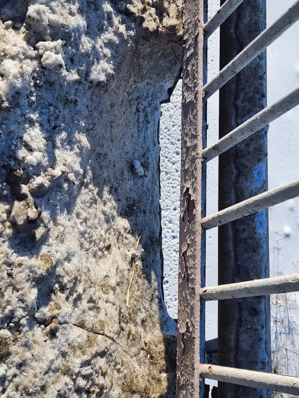 На этом "сюрпризы" не закончились. Далее местного жителя ждала лестница, по которой можно спуститься вниз с моста. Правда, она оказалась совсем не безопасной - ступени сравнялись со снегом.