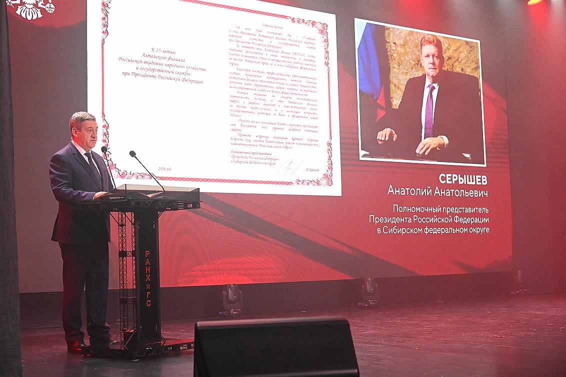Также академию с 25-летием поздравил председатель Алтайского краевого Законодательного Собрания Александр Романенко. Обращаясь к участникам торжества, он сказал: