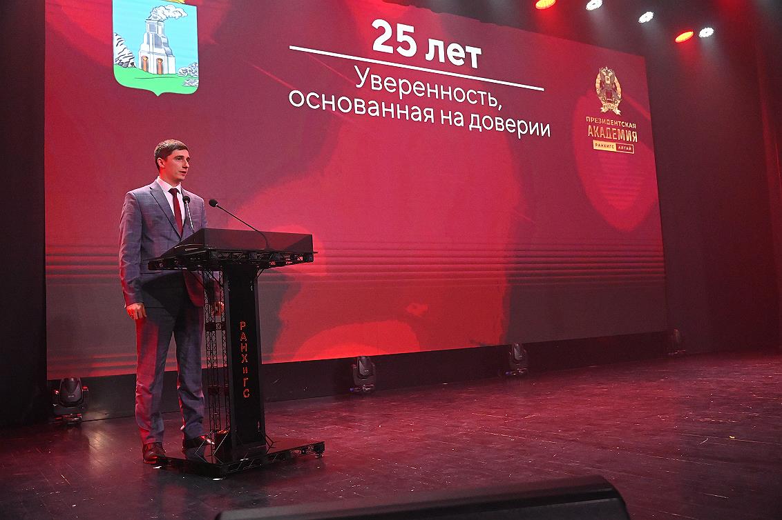 Первый заместитель главы администрации города Барнаула, выпускник Алтайского филиала РАНХиГС 2009 года по специальности «Государственное и муниципальное управление» Андрей Федеров поздравил от имени главы города Барнаула Вячеслава Франка академию с 25-летним юбилеем: