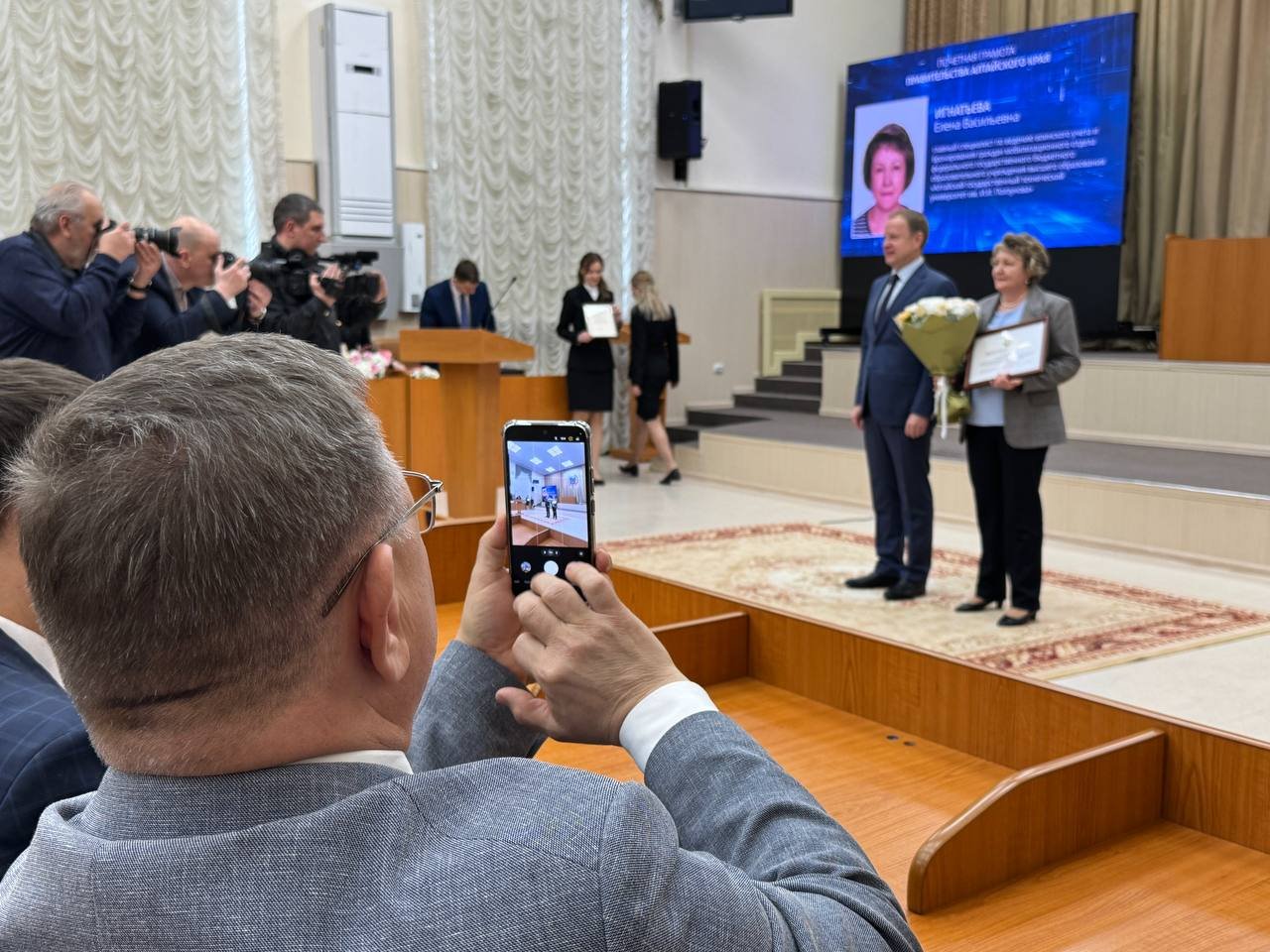 Ученых поощрили почетными грамотами и благодарностями от губернатора, правительства региона, Алтайского краевого Законодательного Собрания и Государственной Думы.
