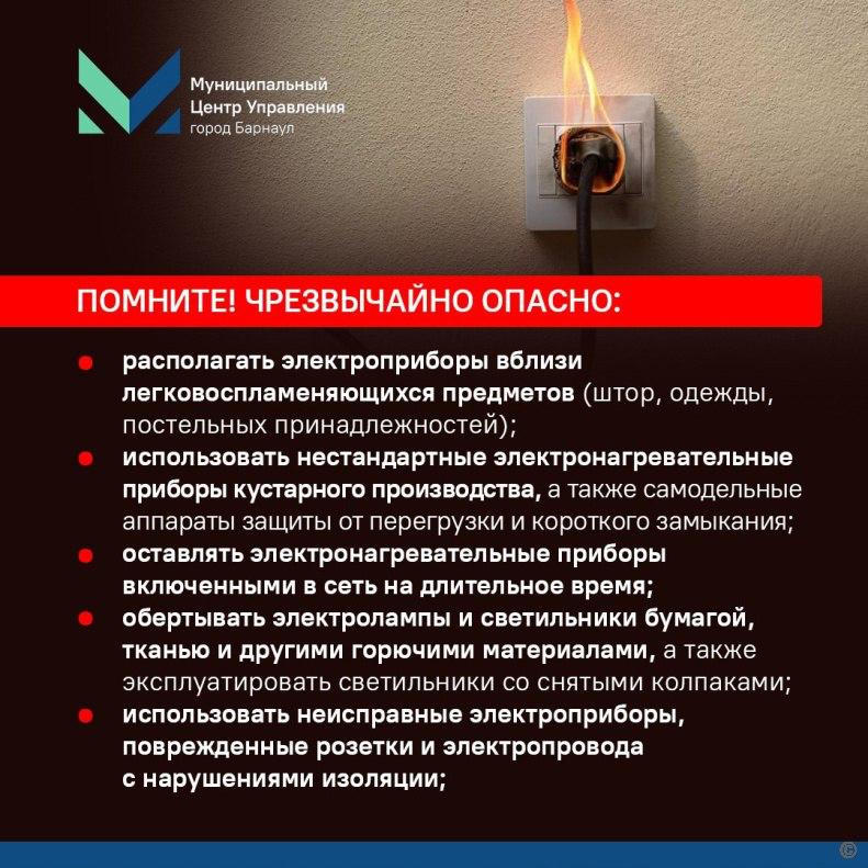Барнаульцам напоминают о правилах пожарной безопасности при эксплуатации электроприборов