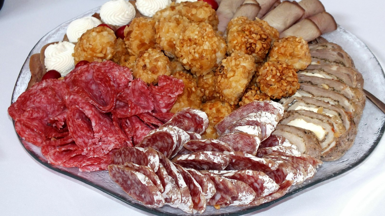 Трудно представить себе праздничный стол без традиционной мясной нарезки. Как правило, для такой закуски используют несколько видов колбас, ветчину и балык, которые режут тонкими и ровными кусочками.