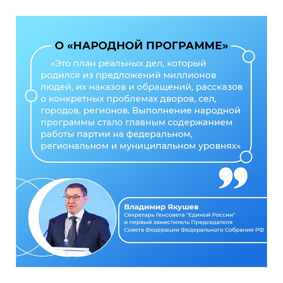 "Народная программа партии позволила запустить обновление школьной инфраструктуры, социальную догазификацию, благоустраивать общественные пространства, сохранять имеющиеся и вводить новые меры соцподдержки, развивать экономику и преодолевать санкции. Помогать приблизить Победу", - подчеркнул секретарь Генсовета партии Владимир Якушев, отметив, что жители РФ станут соавторами и новой народной программы.