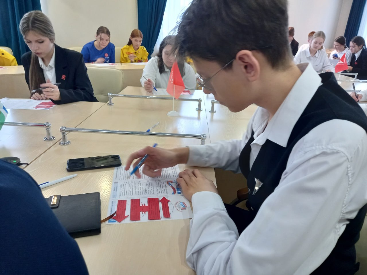 Мальчишки и девчонки собирали информационные буклеты «Азбука юного избирателя»: вклеивали основные тезисы избирательного права, восстанавливали верный порядок голосования, знакомились с основными терминами.