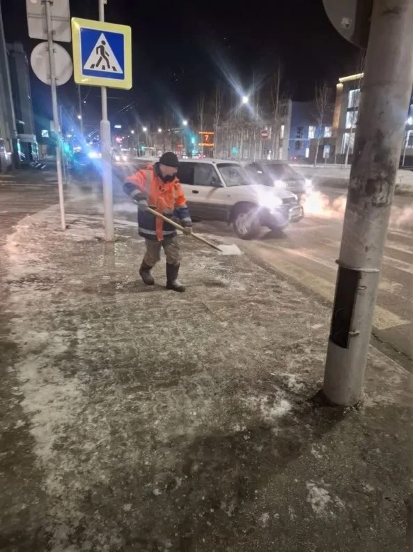 Городские службы проводят противогололедную обработку улично-дорожной сети и общественных пространств