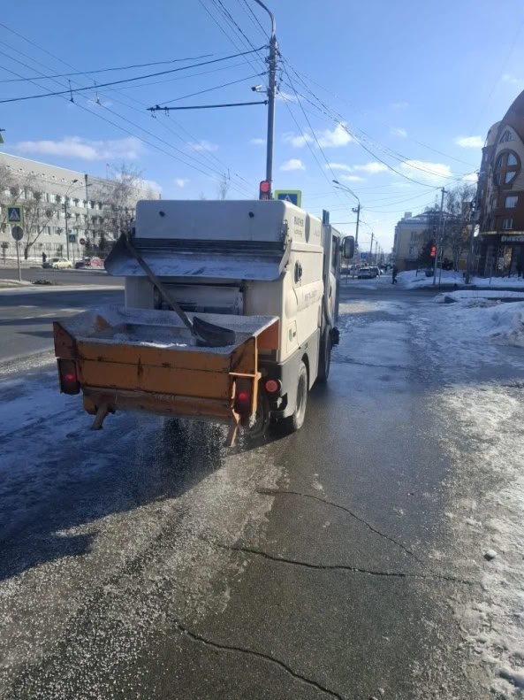 реагентами обработаны проезжие части на десятках улиц (в том числе Профсоюзов, Парфёнова, Цеховая, Кулагина, Маяковского, Новосибирский тракт, Аванесова, Ляпидевского, 6я Нагорная, Фомина, Тихонова и др.);