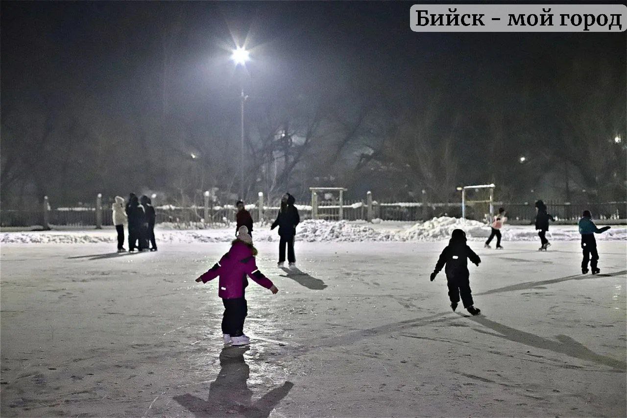 На самом большом городском катке, который залит на стадионе школы № 8, пройдёт открытый турнир по хоккею с мячом среди ветеранов спорта.