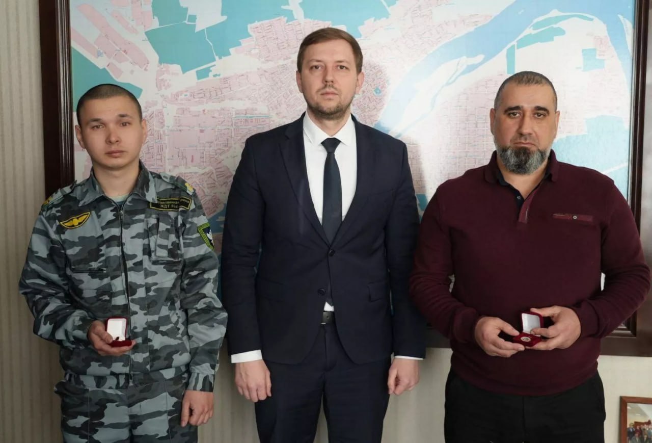 «Вручил наградной знак «С признанием и благодарностью, Бийск» железнодорожникам - составителю поездов станции Руслану Мамедову и стрелку Барнаульского отряда ведомственной охраны Михаилу Трунову за бдительность и помощь в задержании женщины, пытавшейся поджечь релейный шкаф (жд-оборудование, обеспечивающее регулирование и безопасность движения поездов)»,
