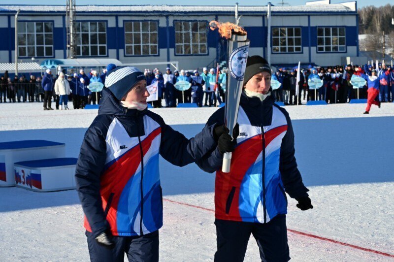 Факел олимпиады спортсменам передал участник специальной военной операции, участник программы «Алтай - земля героев» Владимир Микинин. Честь зажечь огонь соревнований досталась знаменитым близняшкам алтайского спорта, легкоатлеткам Дарье и Александре Фукс.