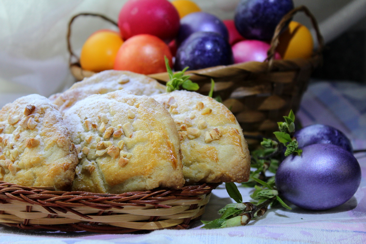 Теперь приступаем к формированию печенья. Раскатайте тесто в пласт толщиной около 0,5 см. Вырежьте круги диаметром 8-10 см. В центр каждого круга положите столовую ложку ореховой начинки, смажьте края взбитым яйцом и сверните тесто в полукруг. Будьте осторожны, чтобы не повредить тесто. Используйте лопаточку, чтобы перенести печенье на смазанный маслом противень.