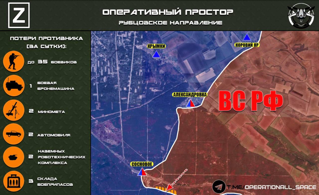 На Рубцовском направлении ВС РФ улучшили тактическое положение юго-восточнее н.п. Сосновое
