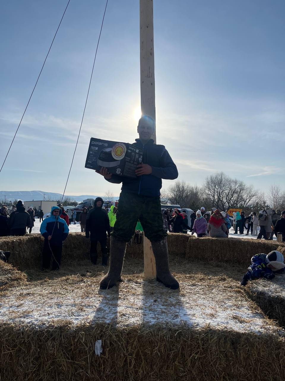 Уроженец Бийска Александр Бледных в 15-й раз покорил масленичный столб на «Сибирской Масленице».