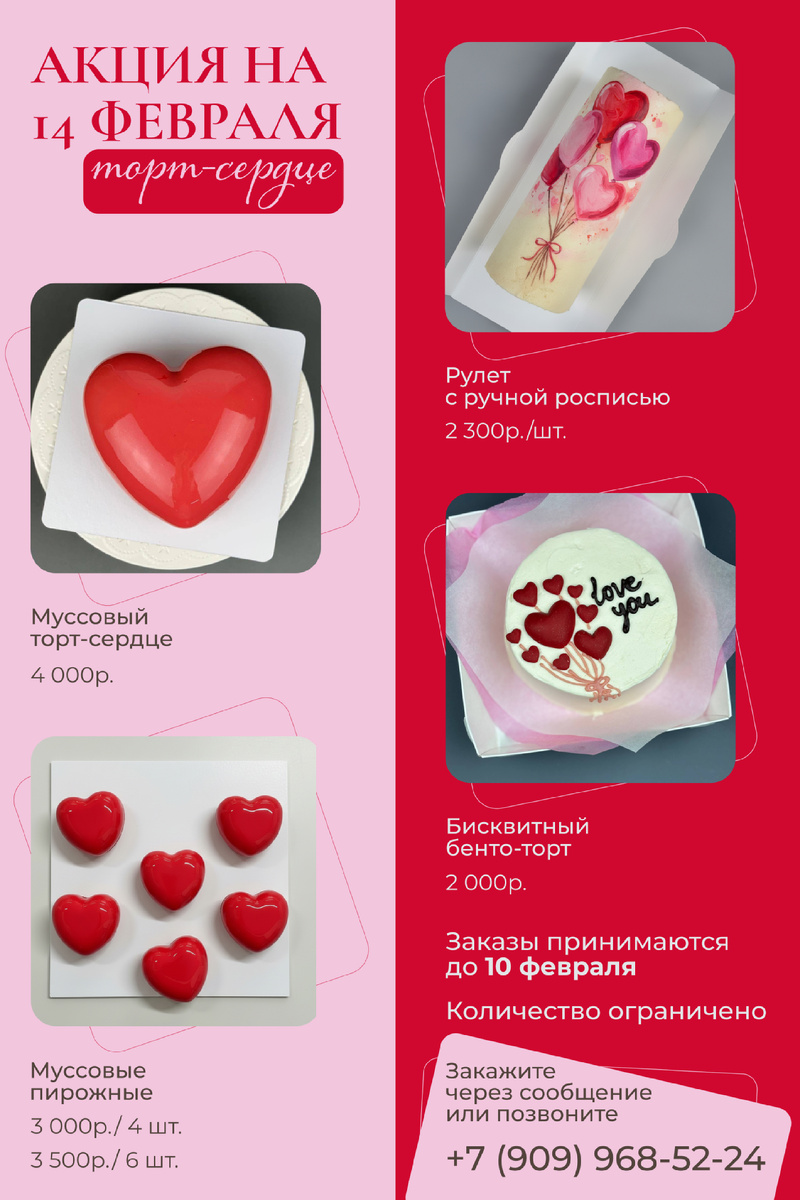 Заказы принимаются до 10 февраля. Не упустите возможность, так как количество тортов ограничено!
