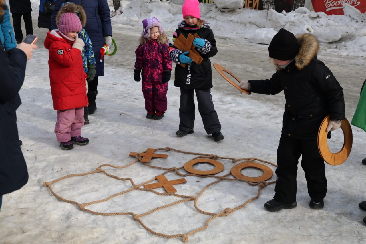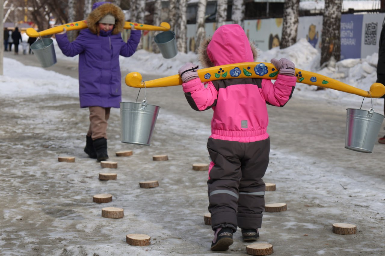 Гостей праздника ждали чай, блины, веселые конкурсы. Дети и взрослые перетягивали канат, прыгали по пенькам, играли в крестикинолики. Также в парке были организованы фотозона и ярмарка.