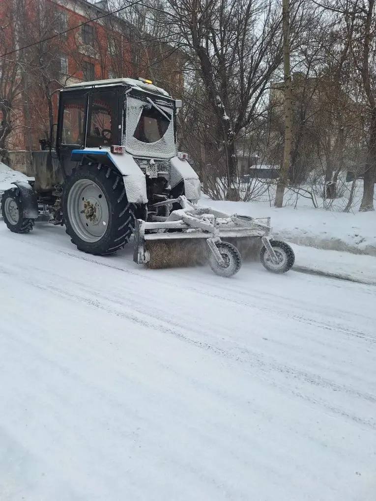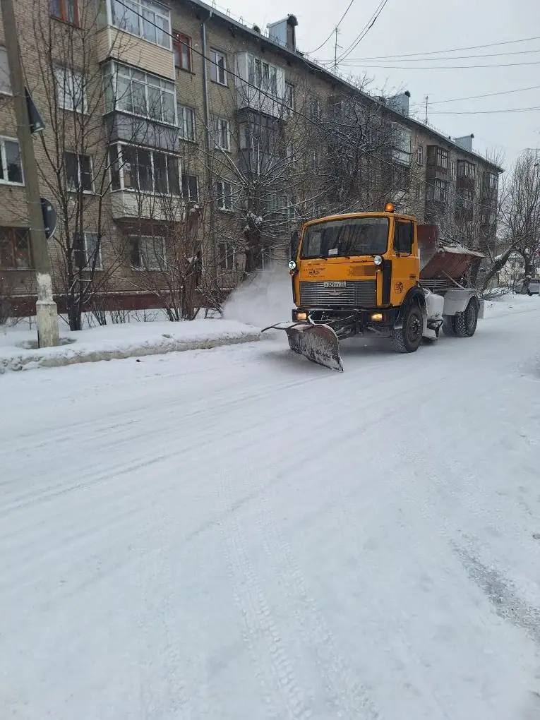 Посыпка дорог песчано-соляной смесью с дальнейшим прометанием по улицам во всех районах города: Малахова, Титова, Эмилия Алексеевой, Петра Сухова, Ленина, Молодежная, Димитрова, Комсомольский и другим улицам.