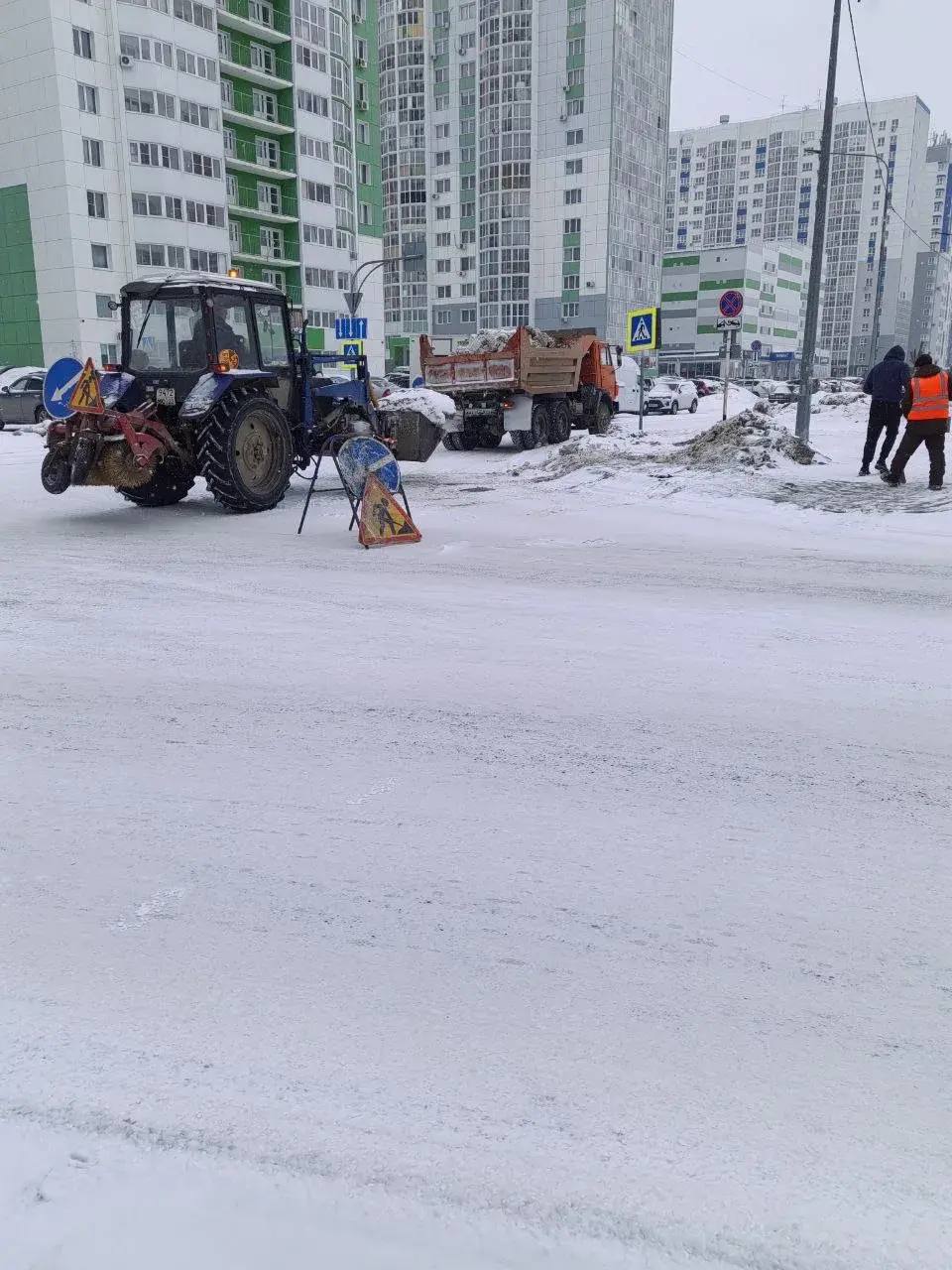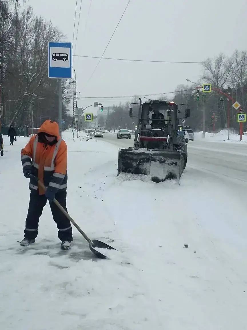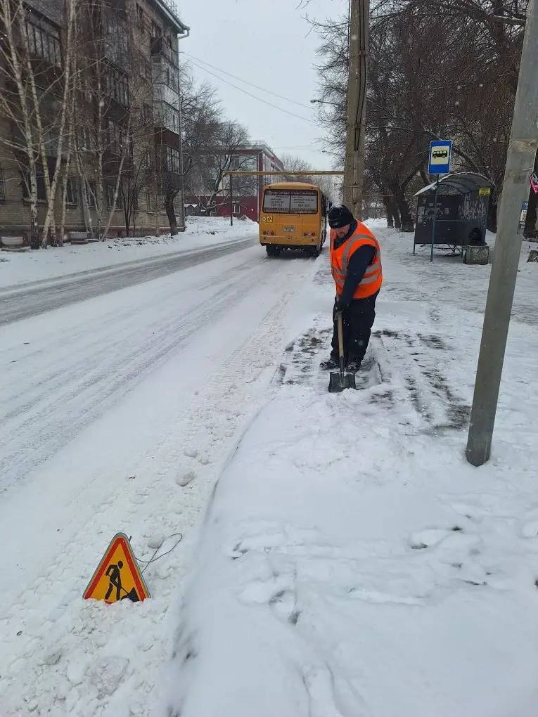 Вывоз снега вблизи остановок павильонов и подходов к пешеходным переходам на улицах: Калинина, Профинтерна, Монтажников, Взлетная и на других участках.