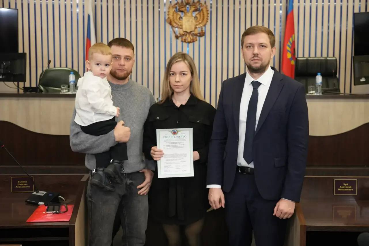Сегодня совместно с Председателем городской Думы Сергеем Владимировичем Ларейкиным вручили свидетельства участникам муниципальной программы «Обеспечение жильем молодых семей в городе Бийске». В этом году поддержку получила 51 семья, 2 из которых — семьи участников специальной военной операции.