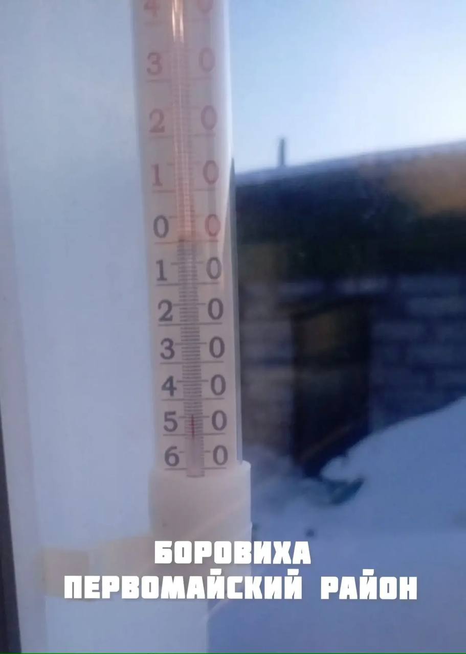 Жители края делятся кадрами своих термометров. Цифры впечатляют. На фото Первомайский, Ребрихинский, Шелаболихинский, Павловский районы. Расскажите, сколько градусов показывает у вас с утра.