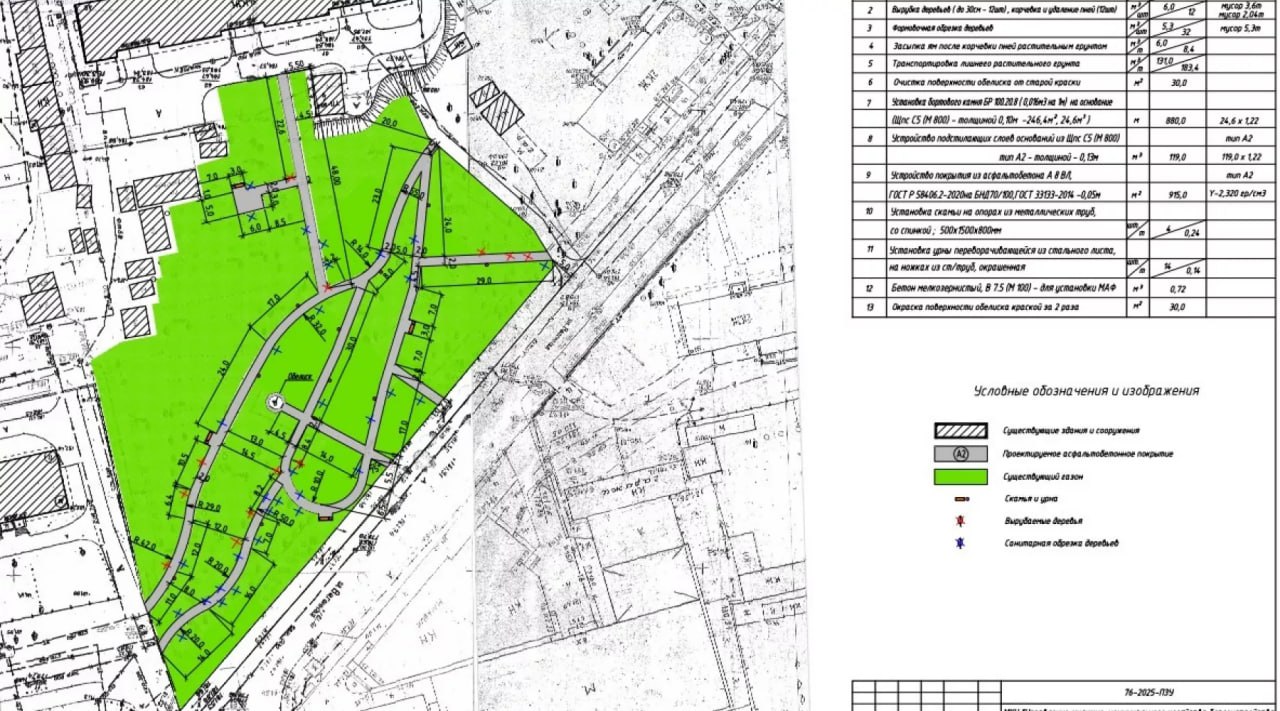 Можно сказать, что предусмотрена "программа минимум" по благоустройству: появятся новые асфальтобетонные дорожки, скамейки со спинкой, торшерные светильники. Все в единой цветовой палитре - шоколадно-коричневые.