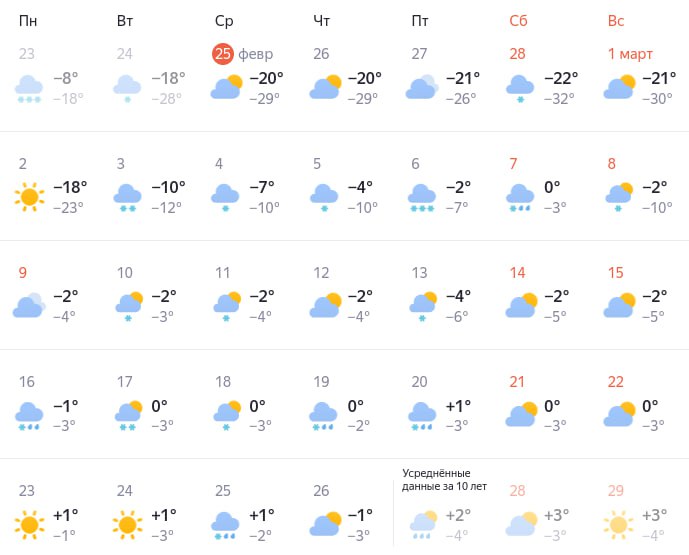 В первую неделю марта ожидается заметное потепление: температура с -16 градусов постепенно к выходным снизится до -3 градусов. Во вторую неделю будут стабильные -2...-4 градуса.