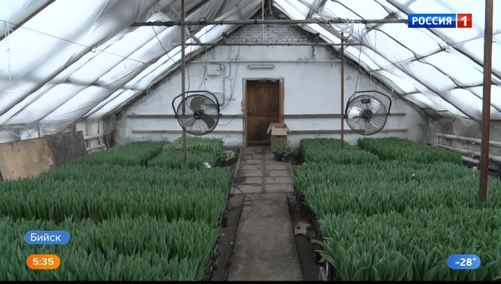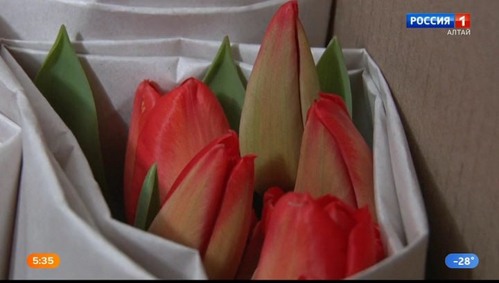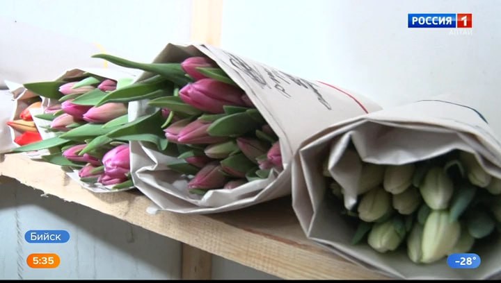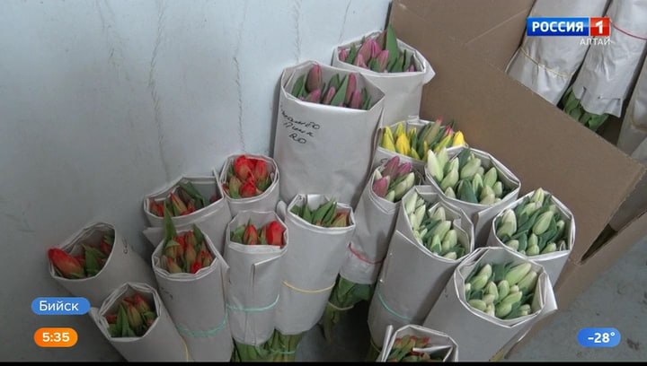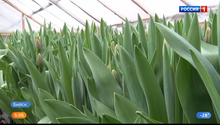 Бийские цветы растут в экологически чистых условиях, говорят цветоводы. Никаких химических веществ, которые есть в импорте. Сейчас в теплице – 20 000 тюльпанов, их срезают на стадии окрашивания бутонов, помещают в холодильник и хранят в бумаге без воды. А использованные луковицы отдают садоводам на повторную рассаду. Многие поставки идут на предприятия.