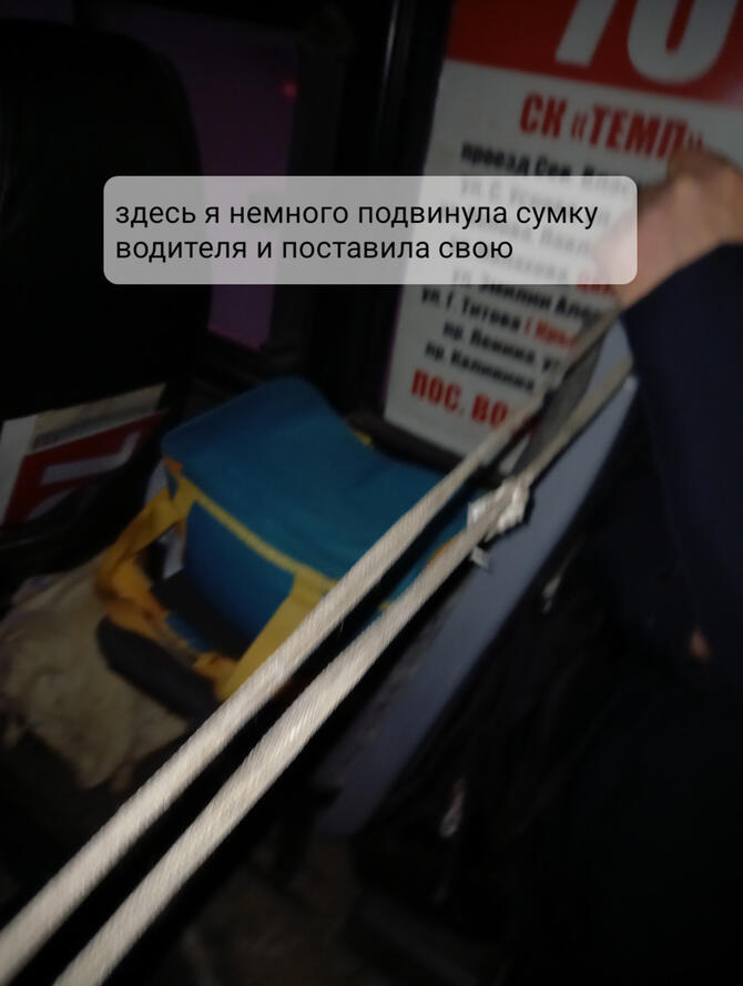 "Автобус подошел уже полный, вошли всего три человека и водитель начал орать, чтобы проходили дальше. На мои возмущения посоветовал заткнуться и ехать на такси. За водителем находятся еще два разобранных сидячих места, которые отгорожены веревкой. Держаться было не за что и я, подвинув водительскую сумку с инструментом, поставила свою женскую сумочку и пакет. Водитель начал орать, чтобы я убрала, в ответ я отказалась. Водитель схватил мою женскую сумочку и пакет и швырнул так, что потом не мог найти. Крича при этом: "Пошла вон отсюда". Все рассыпалось. Не отдавал мне мои вещи, пока я не начала звонить в полицию. На мои слова, что я напишу жалобу, водитель ответил: "Звоните хоть Путину", — рассказала женщина.