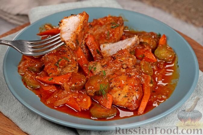 - Солёные огурцы в томатном соусе: Такой необычный подход к свинине обрадует каждого, кто ищет что-то новое для ужина.