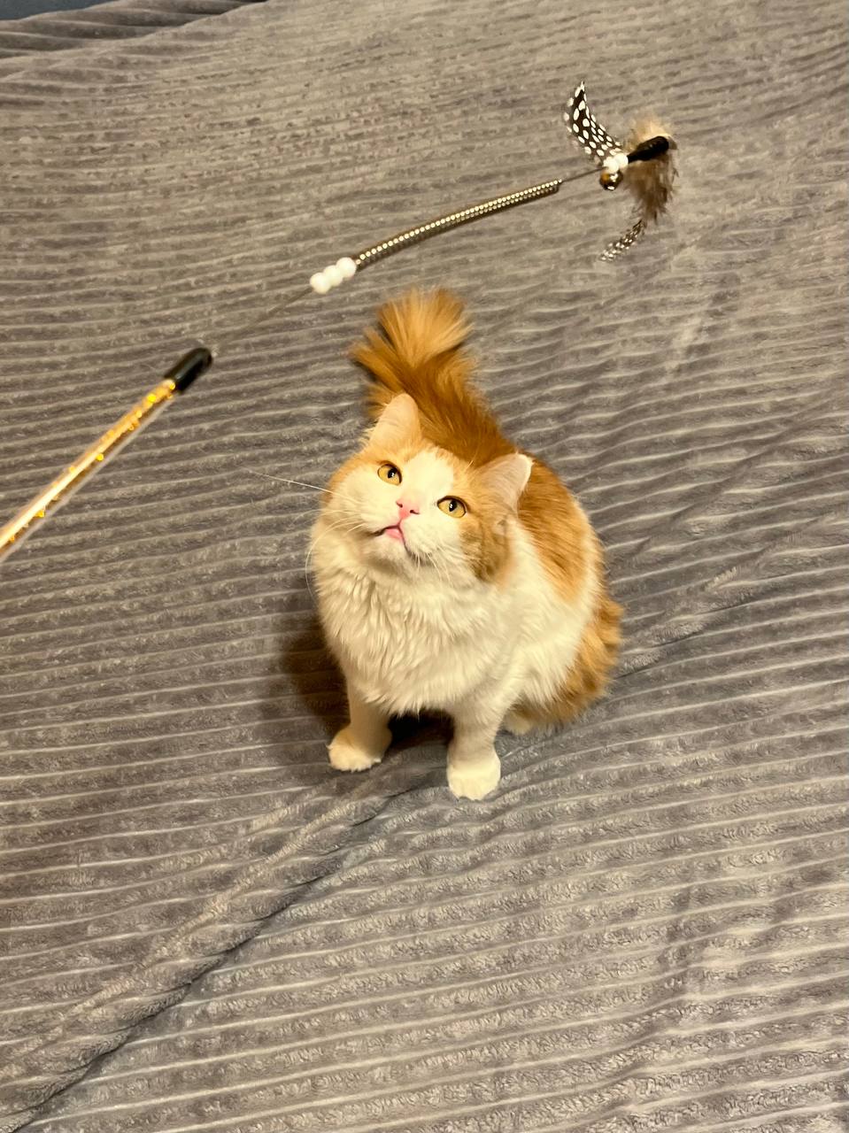 На снимке – Гриша, кот нашего редактора. Он сегодня получил в подарок удочку-дразнилку