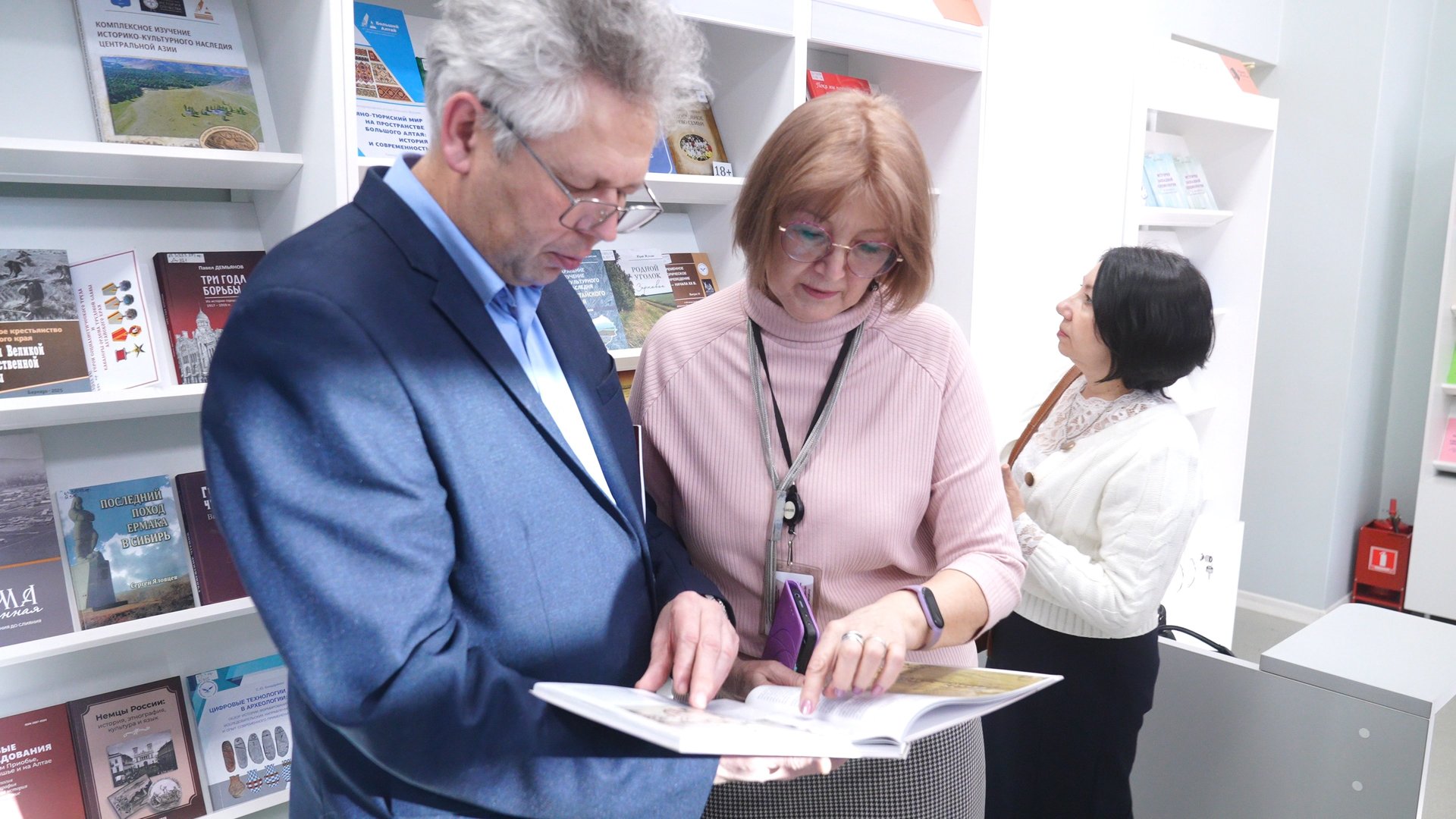 Главная площадка открылась в библиотеке им. Шишкова, где представили выставку из более чем 400 книг, изданных на Алтае в 2025 году.