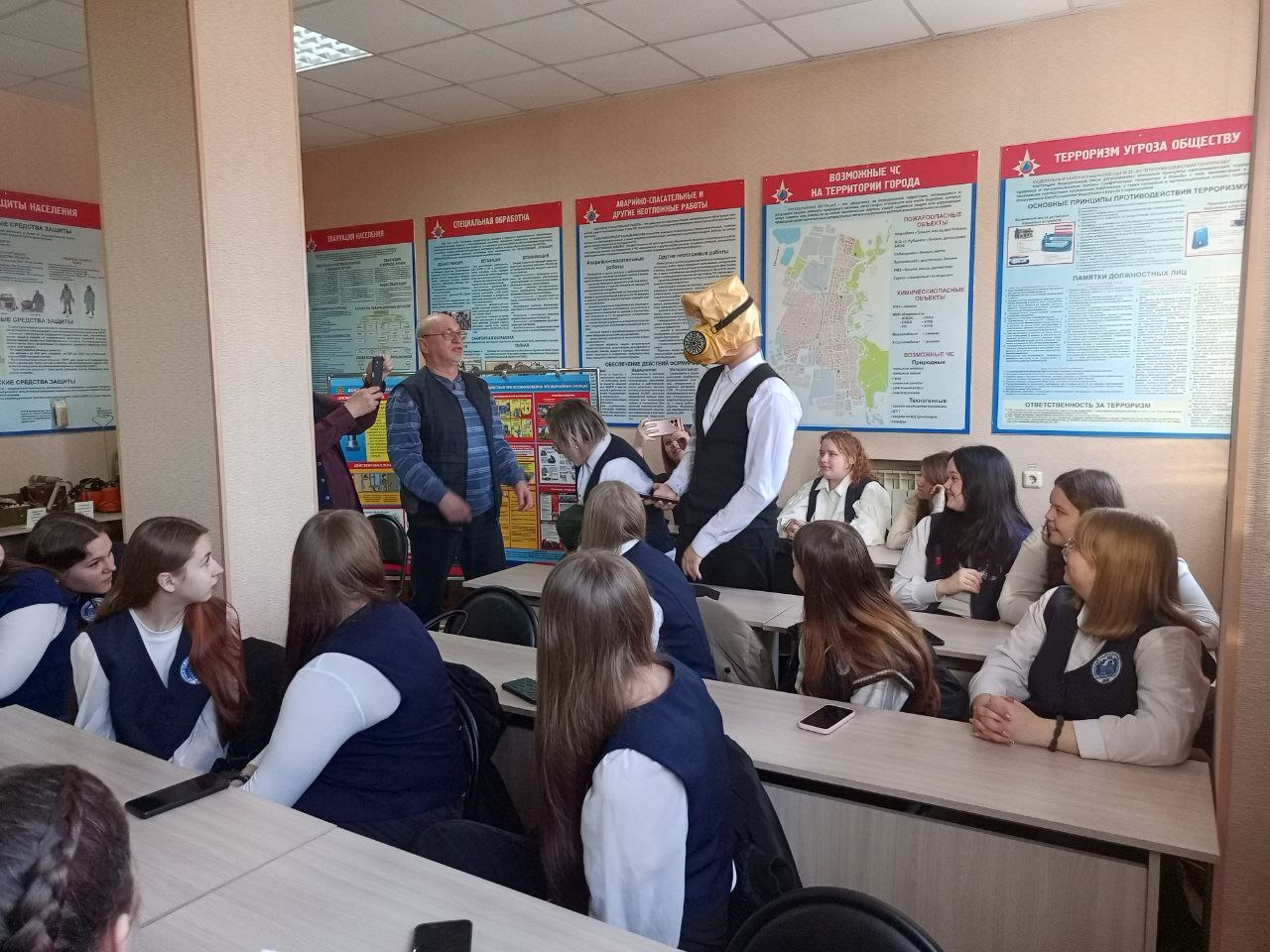Учащиеся рубцовского педагогического колледжа посетили управление по делам ГОЧС, где начальник курсов гражданской обороны Юрий Глущук рассказал им об истории и развитии гражданской обороны в России, действиях при сигнале тревоги «Внимание всем!», использовании средств индивидуальной защиты и действиях в чрезвычайных ситуациях.