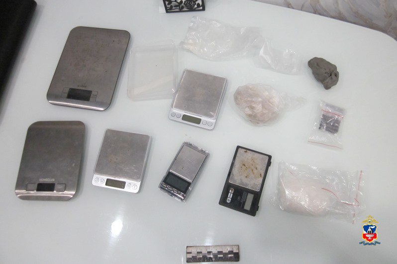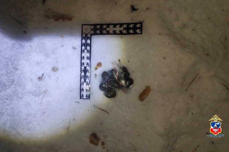 При досмотре у мужчины нашли 64 свертка с наркотиками, еще 34 — в сугробе рядом. В его арендованной квартире изъяли более 100 граммов запрещенных веществ и шесть электронных весов.