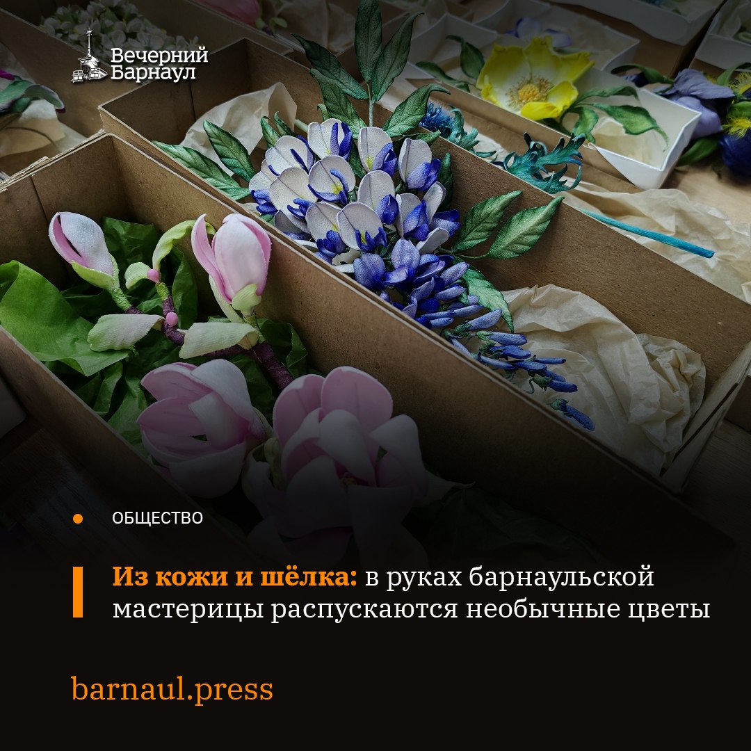 Елена Клименок создаёт из натуральной кожи и шёлка цветы и цветочные композиции, которые становятся брошками, серьгами или украшают ободки и шляпки.