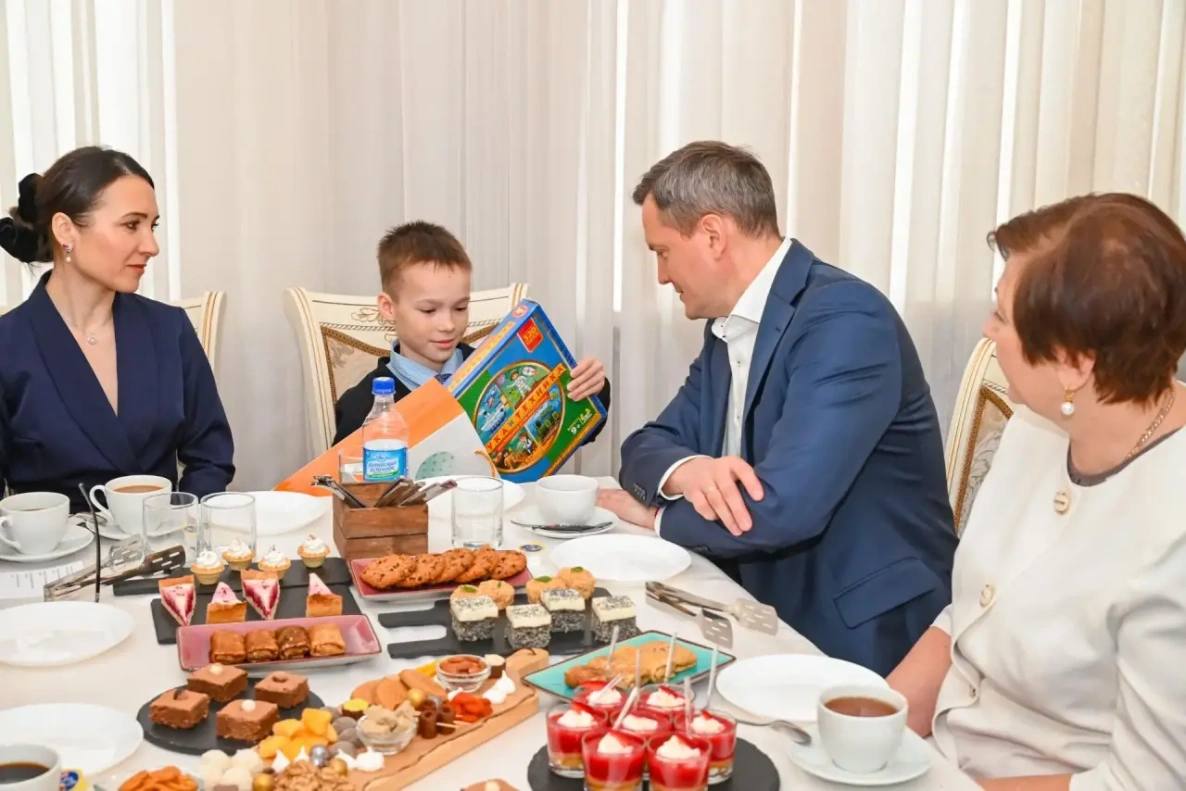Инна Иванова рассказала главе об успехах сына Артема, в том числе спортивных. Мальчик отметил, что ему очень нравится заниматься спортом.