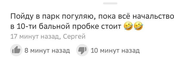 «Пойду в парке погуляю, пока начальство в 10-балльной пробке стоит»