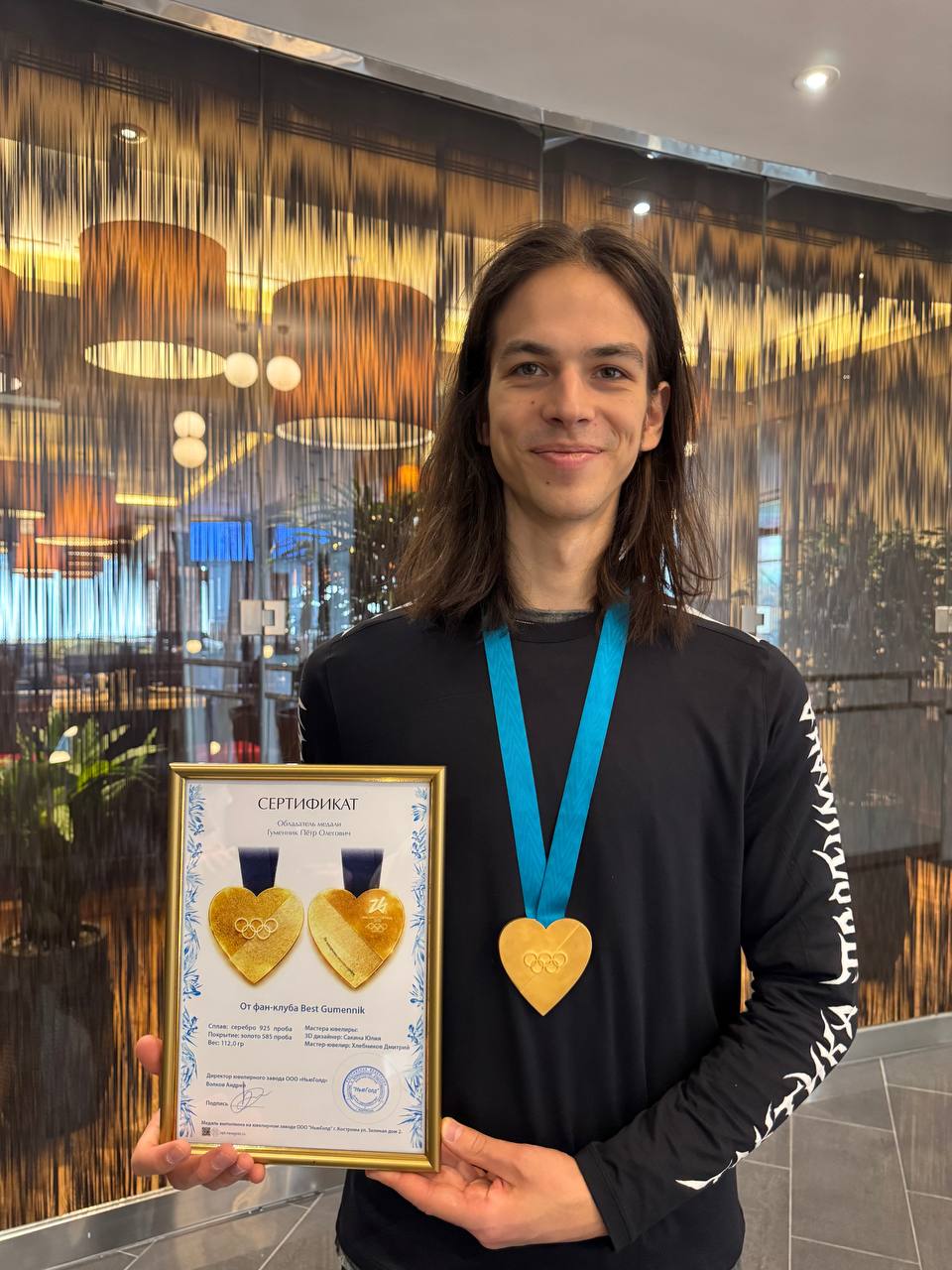 Петру Гуменнику вручили олимпийскую медаль в форме сердца