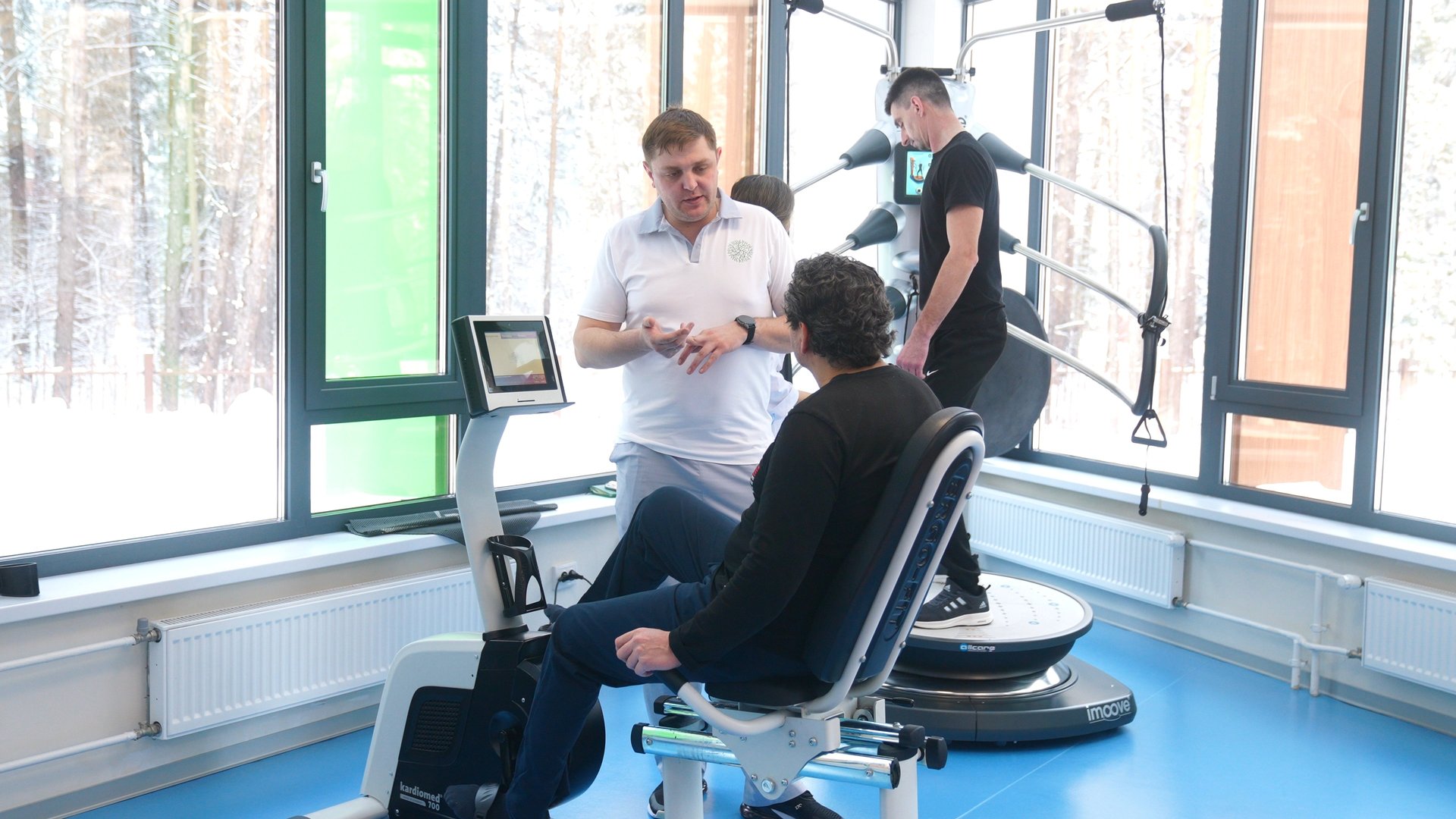 Гости посетили краевой госпиталь для ветеранов войн, где военнослужащим помогают восстанавливаться после травм с помощью аппаратной психокоррекции, и центр «Территория здоровья», где бойцы проходят физическую реабилитацию — ЛФК и тренировки в бассейне.