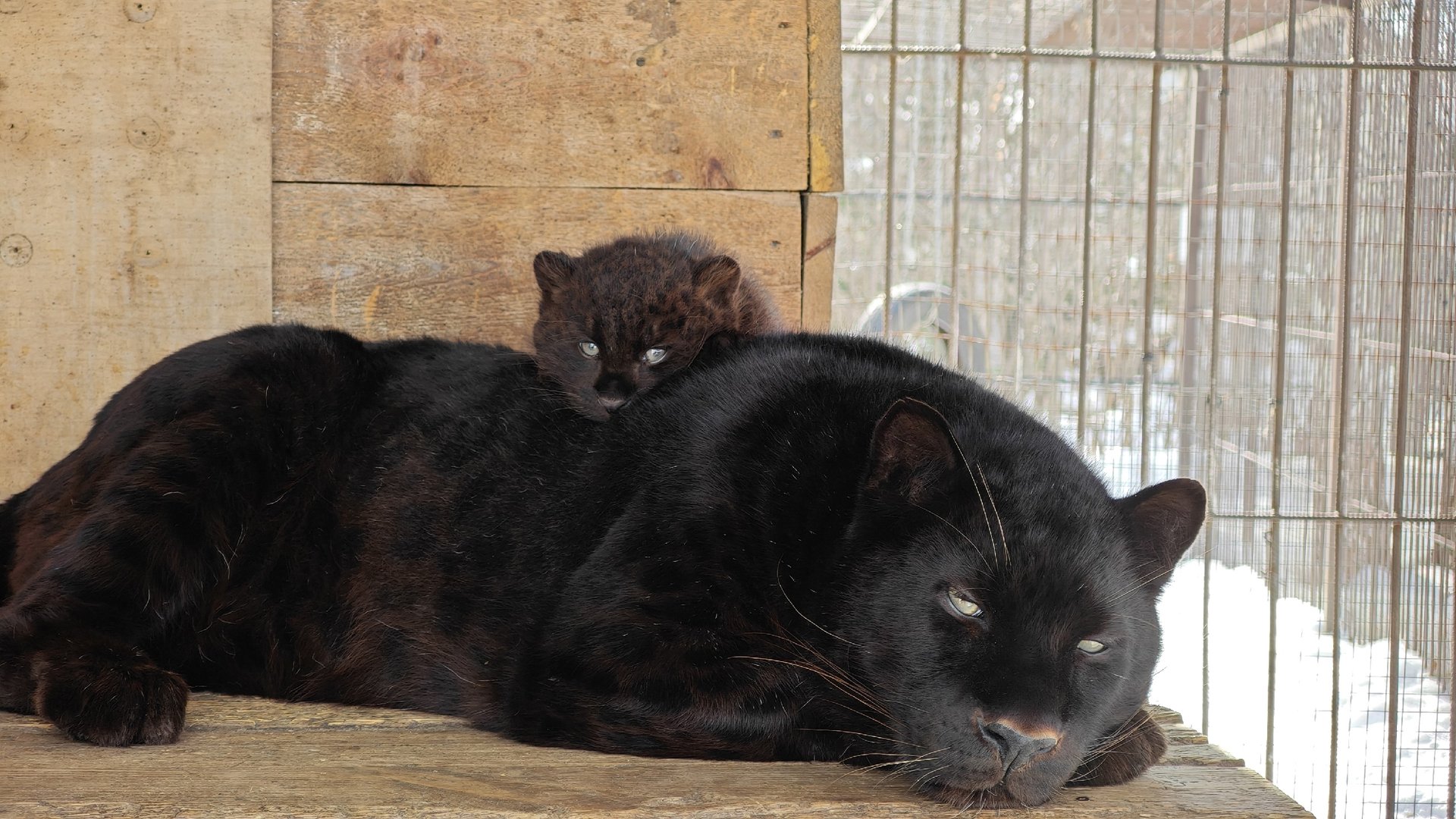 «Вопреки инстинктам»: самец леопарда ухаживает за своим детенышем в барнаульском зоопарке